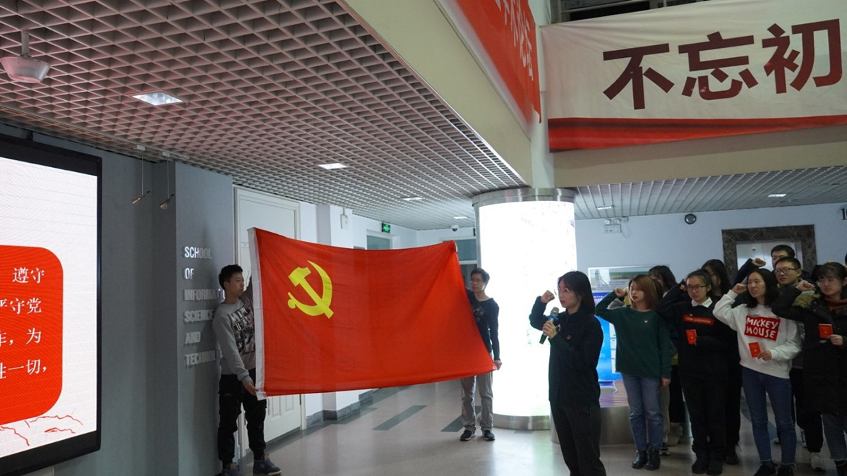 学生党建中心副秘书长王伊婷带领全体新发展党员庄重地进行了宣誓,大家紧握右拳,以志昂扬的斗志和饱满的热情,铿锵有力地宣读了入党誓词,许下了对党庄严而神圣的誓言。