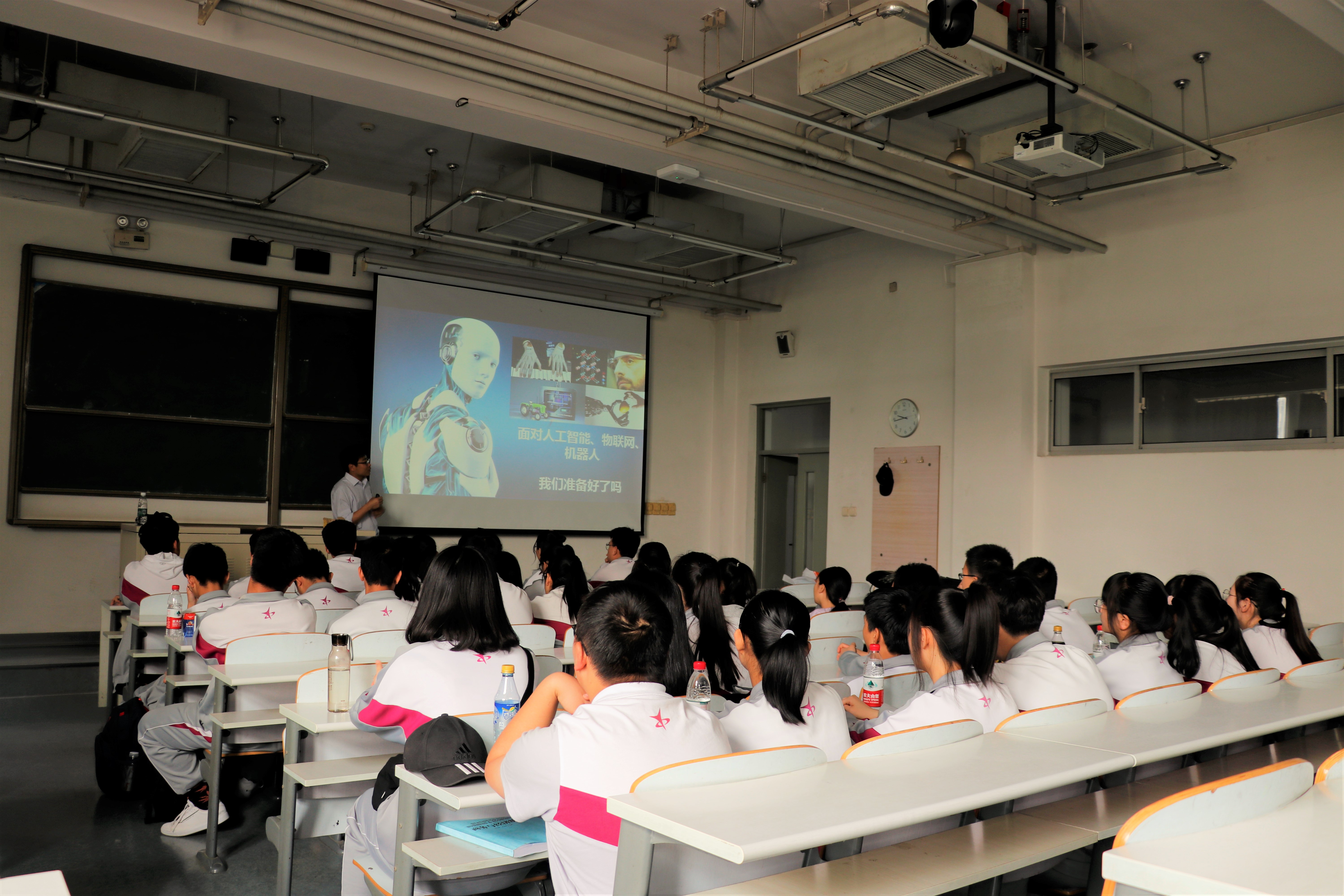 活动分为5个环节,首先,由电子工程系副主任邢志强教授为一中师生开展《智能机器人发展史》的讲座,并指导学生开展科技制作。第二环节为延庆一中校友,17级研究生吕恒宇同学为师生分享了自己的大学生活。第三环节,一中师生共同观看了手机赚钱app