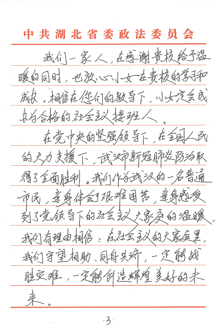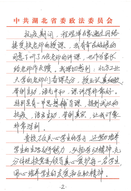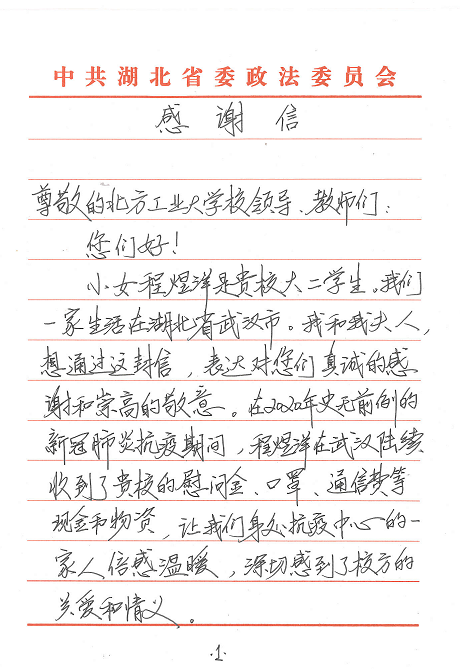 “小女程煜洋是贵校大二学生。我们一家生活在湖北省武汉市。我和我的夫人,想通过这封信,对您们表达真诚的感谢和崇高的敬意。在2020年史无前例的新冠肺炎抗疫期间,程煜洋陆续收到了贵校的慰问金、口罩、通信费等现金和物资,让我们身处抗疫中心的一家人倍感温暖,深切感到校方的关爱和情义……”。这是4月3日手机赚钱app