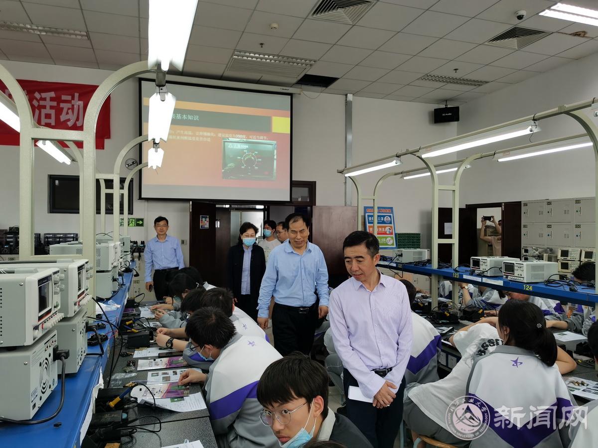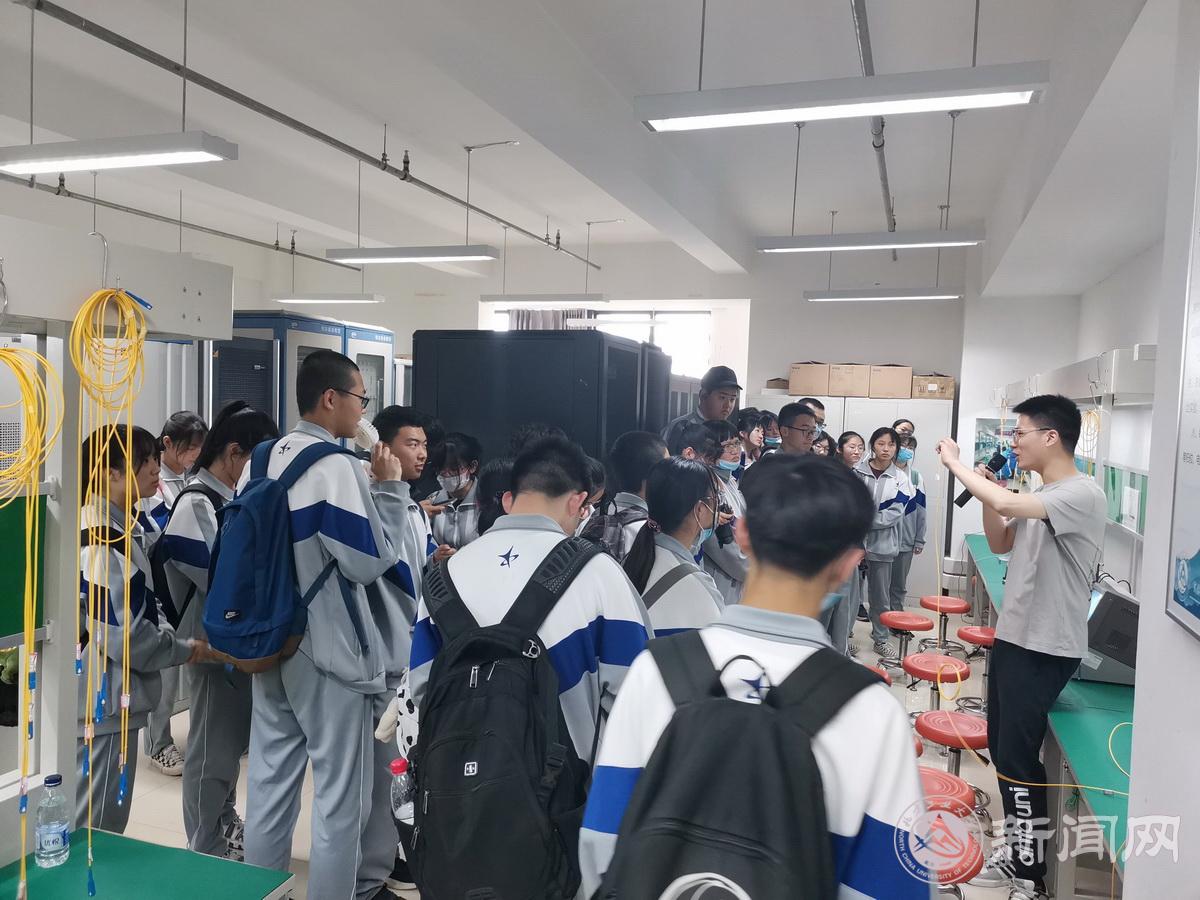 实验中心教师组织延庆一中师生参观了电基础教学实验室,光通信光纤制作、微电子集成电路和创翼星工坊等专业特色实验室,并展示了学生的竞赛作品、发表的论文、授权的专利。