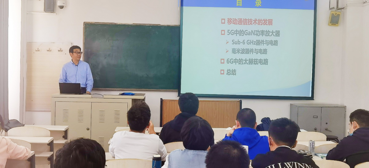 师生作了题为“化合物半导体在移动通信中的应用”的学术报告。