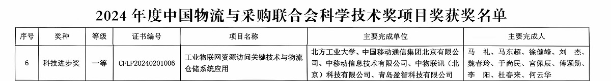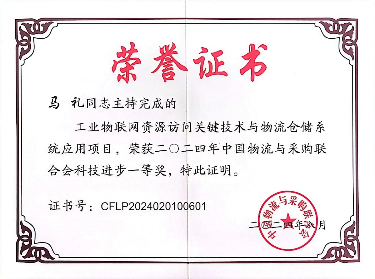 马礼教授作为第一完成人的项目成果“工业物联网资源访问关键技术与物流仓储系统应用”获评科技进步奖一等奖。这是我校首次以第一完成单位身份获得该奖项一等奖。