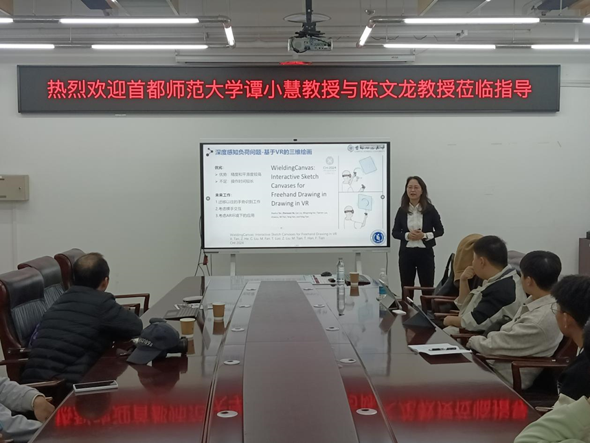 活动最后,陈文龙教授和谭小慧教授与在场师生分别就教育智能化与大模型应用、人工智能与虚拟现实融合的关键问题,及未来趋势等进行了深入交流,现场互动积极,气氛热烈。师生们纷纷表示,通过此次学术交流活动对教育智能化技术、虚拟现实与人机交互研究的前沿成果有了更深入的认识,也为后续相关研究提供了新的启发与思路。
