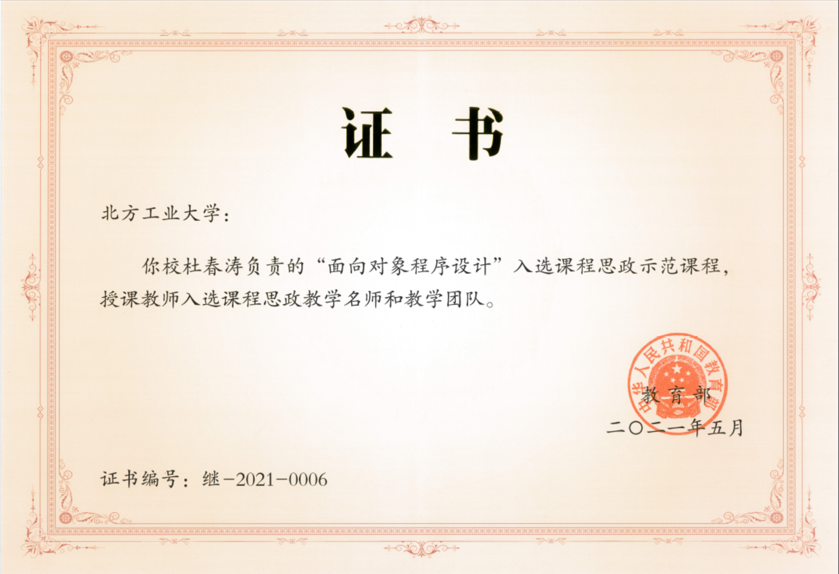 “纸上得来终觉浅,绝知此事要躬行”,在深入研究和多年实践的基础上,杜春涛团队负责的《面向对象程序设计》课程获教育部首批课程思政示范课,《微信小程序开发》课程获北京市首批课程思政示范课、全国高等院校计算机基础教育研究会优秀课程思政教学案例奖和首届智慧树杯课程思政大赛优秀奖。“新华思政网”、“在线学习”网和“人民公开课”等媒体都进行了相关报道。